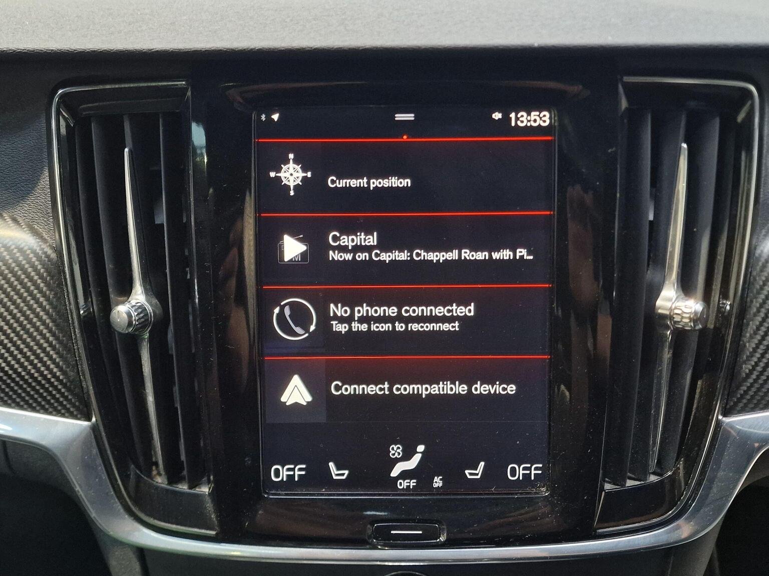 Sensus Connect with Premium Sound by Bowers and Wilkins, Xenium Pack, Power Glass Tilt and Slide Panoramic Sunroof, Winter Plus Pack, Laminated Side Windows, Parking Camera 360 Degree Surround View, R-Design Carbon Fibre Inlays, Blind Spot Information System-BLIS- with Cross Traffic Alert-CTA - and Rear Collision Mitigation plus Autodimming Exterior Mirrors, Power Driver Seat with Memory, Keyless Drive, Volvo On Call with App, Power Passenger Seat, Autodimming Exterior Mirrors, CD Player, Nappa Soft Leather Perforated Contour Sports - Charcoal, Apple CarPlay, Park Assist Pilot, Rear Park Assist Camera, Dark Tinted Windows - Rear Side Windows and Cargo Area